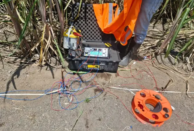 Exploración no invasiva para identificar estructuras, fallas, cavidades y zonas saturadas.